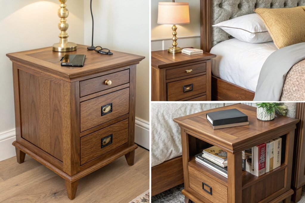 Selected panels are matched for color and grain, creating a visually appealing and durable structure. Three spacious drawers provide organized storage for essentials like snacks, jewelry, and daily items. Each drawer glides smoothly, combining practicality with refined craftsmanship.