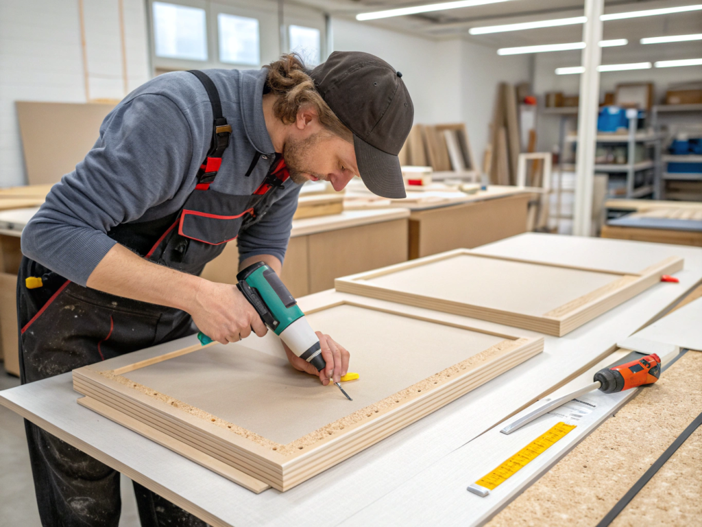 CNC-controlled pressing lines hold MDF assemblies under uniform pressure. Heating systems accelerate curing without overheating the core. This reduces cycle times and increases joint stability.
