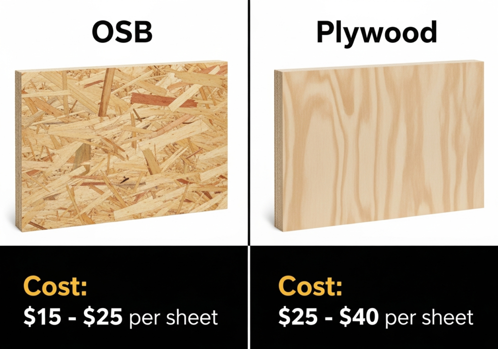 OSB is generally 20% to 30% cheaper than plywood and more readily available in large panel sizes, making it ideal for cost-sensitive builds.