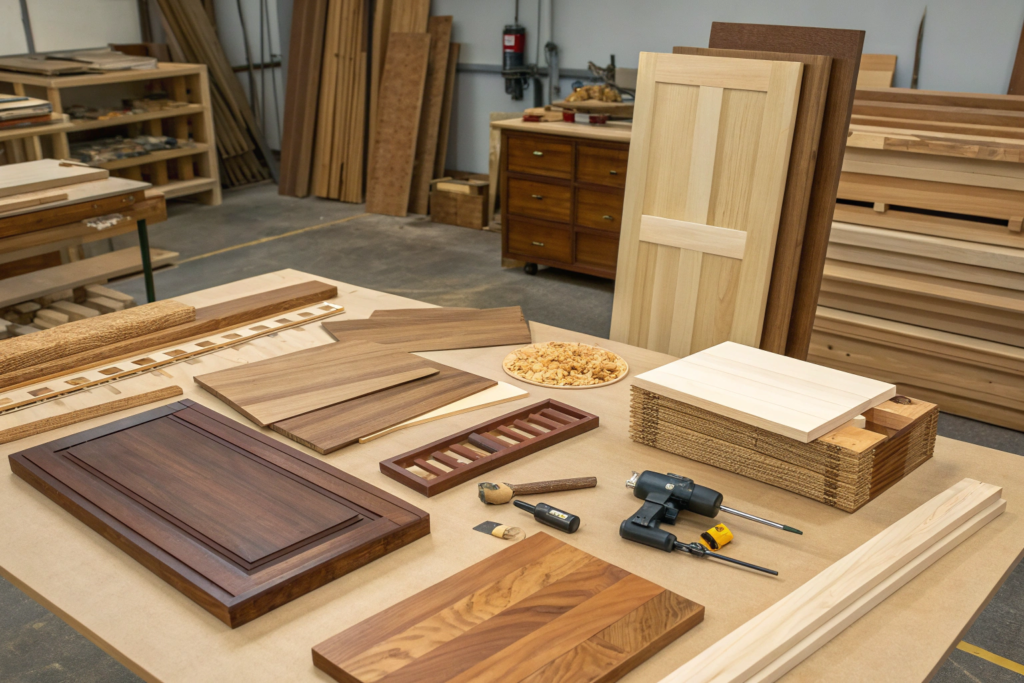 Engineered panels blend softwood cores with hardwood face veneers to combine cost‑efficiency and surface performance where appropriate.